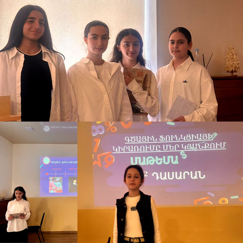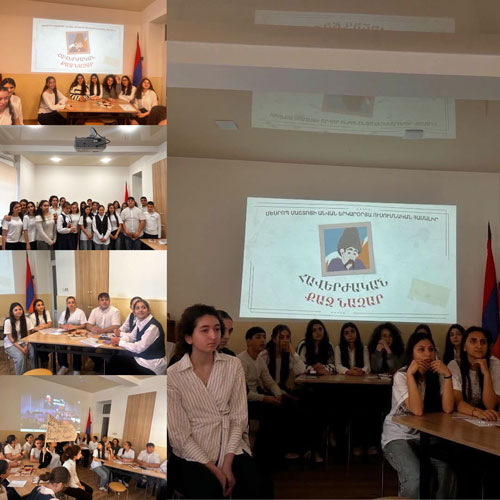 ՀՈՒՄԱՆԻՏԱՐ ԱՌԱՐԿԱՆԵՐԻ ՏԱՍՆՕՐՅԱԿ Խաղ-մրցույթ 9-րդ դասարանցիների միջև 10-րդ դասարանում անցկացվեց բաց դաս Հումանիտար առարկաների տասնօրյակի շրջանակներում 11-րդ դասարանի աշակերտները...  Մ.ՄԱՇՏՈՑԻ ԱՆՎԱՆ ՈՒՍՈՒՄՆԱԿԱՆ ՀԱՄԱԼԻՐԻ ՀՅՈՒՐՆ Է ՖՐԱՆՍԻԱՅԻ ԴԵՍՊԱՆԱՏԱՆ ՄՇԱԿՈՒԹԱՅԻՆ ԲԱԺՆԻ ՆԵՐԿԱՅԱՑՈՒՑԻՉ ԴՈՄԻՆԻԿ ՎԵՅՍԻՆ և ՆՐԱ ԳՈՐԾԸՆԿԵՐԸ  ԵՐԵԽԱՆԵՐԻ ԻՐԱՎՈՒՆՔՆԵՐԸ ԵՒ ՊԱՐՏԱԿԱՆՈՒԹՅՈՒՆՆԵՐ»