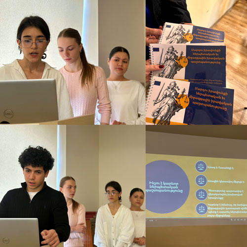 ՀՈՒՄԱՆԻՏԱՐ ԱՌԱՐԿԱՆԵՐԻ ՏԱՍՆՕՐՅԱԿ Խաղ-մրցույթ 9-րդ դասարանցիների միջև 10-րդ դասարանում անցկացվեց բաց դաս Հումանիտար առարկաների տասնօրյակի շրջանակներում 11-րդ դասարանի աշակերտները...  Մ.ՄԱՇՏՈՑԻ ԱՆՎԱՆ ՈՒՍՈՒՄՆԱԿԱՆ ՀԱՄԱԼԻՐԻ ՀՅՈՒՐՆ Է ՖՐԱՆՍԻԱՅԻ ԴԵՍՊԱՆԱՏԱՆ ՄՇԱԿՈՒԹԱՅԻՆ ԲԱԺՆԻ ՆԵՐԿԱՅԱՑՈՒՑԻՉ ԴՈՄԻՆԻԿ ՎԵՅՍԻՆ և ՆՐԱ ԳՈՐԾԸՆԿԵՐԸ  ԵՐԵԽԱՆԵՐԻ ԻՐԱՎՈՒՆՔՆԵՐԸ ԵՒ ՊԱՐՏԱԿԱՆՈՒԹՅՈՒՆՆԵՐ»