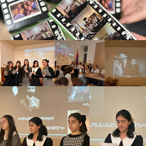 ՀՈՒՄԱՆԻՏԱՐ ԱՌԱՐԿԱՆԵՐԻ ՏԱՍՆՕՐՅԱԿ Խաղ-մրցույթ 9-րդ դասարանցիների միջև 10-րդ դասարանում անցկացվեց բաց դաս Հումանիտար առարկաների տասնօրյակի շրջանակներում 11-րդ դասարանի աշակերտները...  Մ.ՄԱՇՏՈՑԻ ԱՆՎԱՆ ՈՒՍՈՒՄՆԱԿԱՆ ՀԱՄԱԼԻՐԻ ՀՅՈՒՐՆ Է ՖՐԱՆՍԻԱՅԻ ԴԵՍՊԱՆԱՏԱՆ ՄՇԱԿՈՒԹԱՅԻՆ ԲԱԺՆԻ ՆԵՐԿԱՅԱՑՈՒՑԻՉ ԴՈՄԻՆԻԿ ՎԵՅՍԻՆ և ՆՐԱ ԳՈՐԾԸՆԿԵՐԸ  ԵՐԵԽԱՆԵՐԻ ԻՐԱՎՈՒՆՔՆԵՐԸ ԵՒ ՊԱՐՏԱԿԱՆՈՒԹՅՈՒՆՆԵՐ»